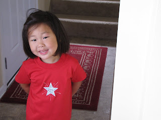 We kicked off our holiday weekend with going to the Fireworks in Manchester on Friday night. We went with the Browns. The kids had fun playing around while they were waiting for the Fireworks to begin. Everyone enjoyed the show, except for Leah. She cried and was glad when they were over! Friday afternoon the kids decorated shirts. They really turned out cute. Too bad I didn't get a picture of all of them. I don't think they will look so hot once they go through the wash. On Saturday, even though the weather wasn't all that great, the kids played on the slip n slide. Later in the afternoon we headed over to Jill's for hotdogs and hamburgers. We had a bonfire and roasted marshmallows and had s'mores. We capped off the evening by doing sparkles which all the kids loved.