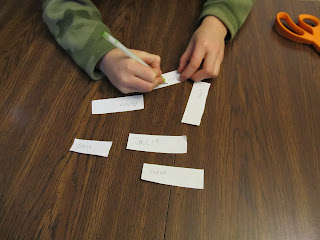 Jonah made up a slip of paper with the kids names on each one, and then they each drew a slip of paper. The point isn't to do anything elaborate for that sibling during Advent, but simply get into the habit of praying for a sibling.